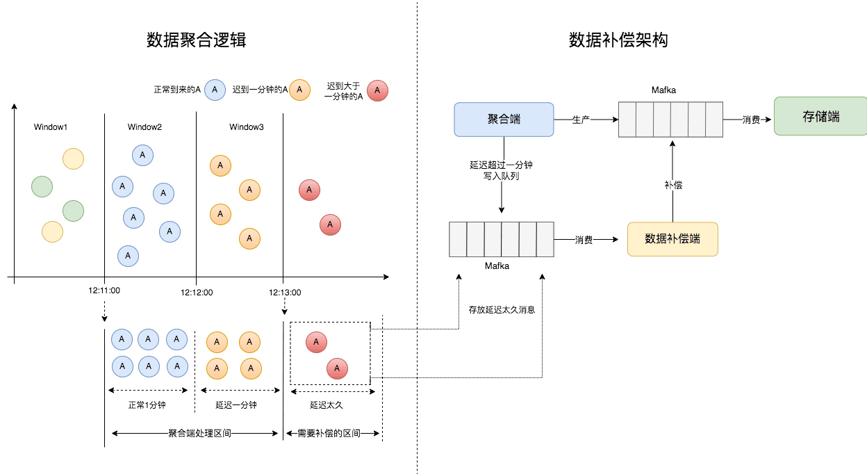 因此,我们增加了延迟消息补偿机制,对过期的数据发入补偿队列(采用的是美团消息队列服务Mafka),通过过期数据补偿的方式,保证延迟久的消息也能正常存储,通过最终一致性保证了后续的数据库异常分析的准确性。以下是数据补偿机制的设计方案: